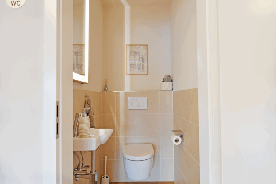 Die Beheizung sowie die Warmwasserversorgung erfolgen über eine Wärmepumpe. Die Fläche ist mit einer Fußbodenheizung versehen.