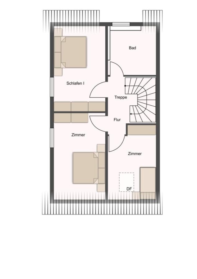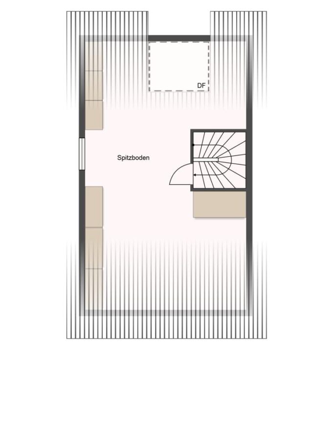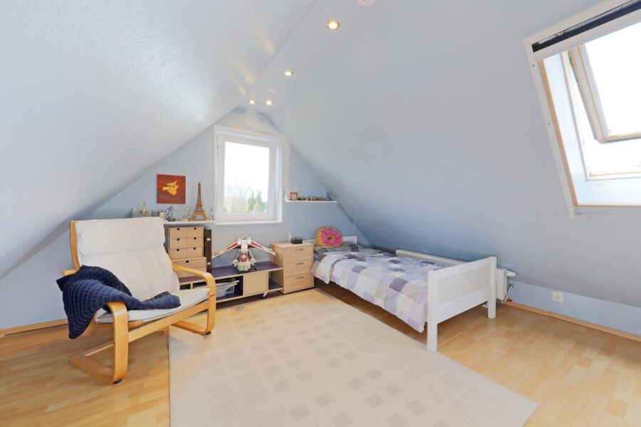 Über eine weitere Treppe erreichen Sie schließlich den lichterfüllten Spitzboden mit zusätzlicher Wohnfläche zur freien Nutzung.
