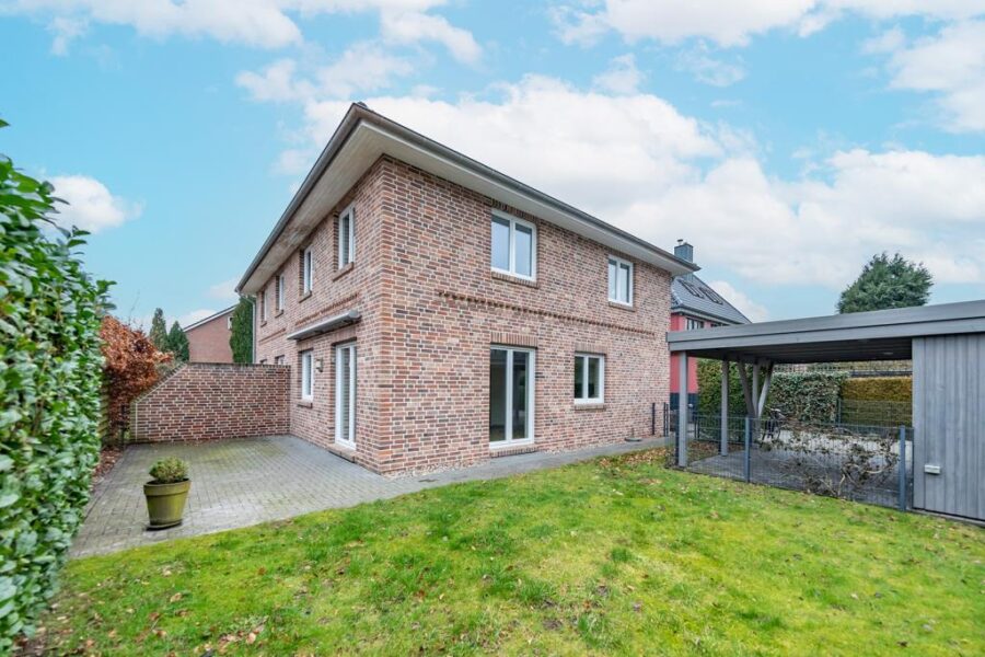 Die hier angebotene Immobilie stammt aus dem Jahr 2012 und wurde in massiver Bauweise errichtet. Von außen präsentiert sich das Objekt mit rot-buntem Klinker und anthrazitfarbenen Dachziegeln auf dem Walmdach.