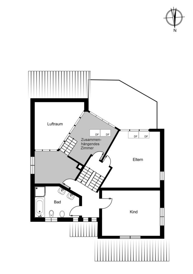 - Dachgeschoss ebenfalls im Split-Level-Stil gestaltet