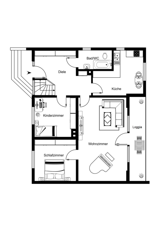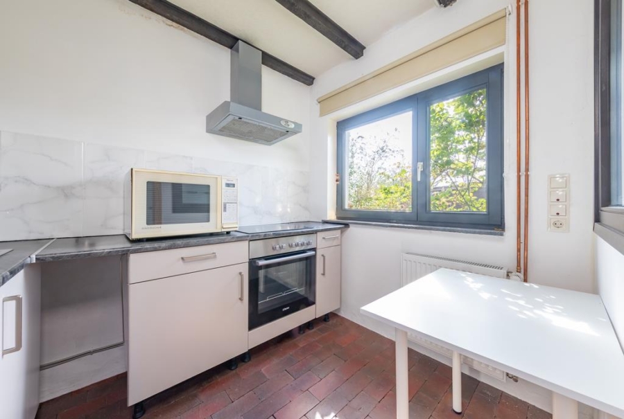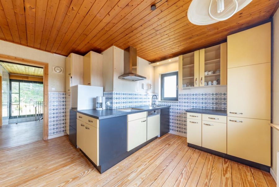 Die Küche ist funktional geschnitten und bietet ausreichend Platz für den Familienalltag. Sie lässt sich individuell modernisieren und an die eigenen Bedürfnisse anpassen – sei es als Wohnküche oder klassischer Kochbereich.