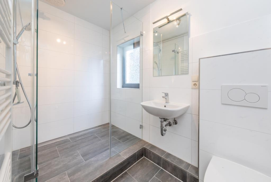 Über den bereits vorhandenen separaten Eingang erreichen Sie linker Hand den im identischen Schnitt wie im Erdgeschoss vorhandenen Wohnbereich mit dem hintergelagerten Zimmer. Zudem verfügt diese Ebene über eine separate Küche sowie ein modernisiertes Duschbad.