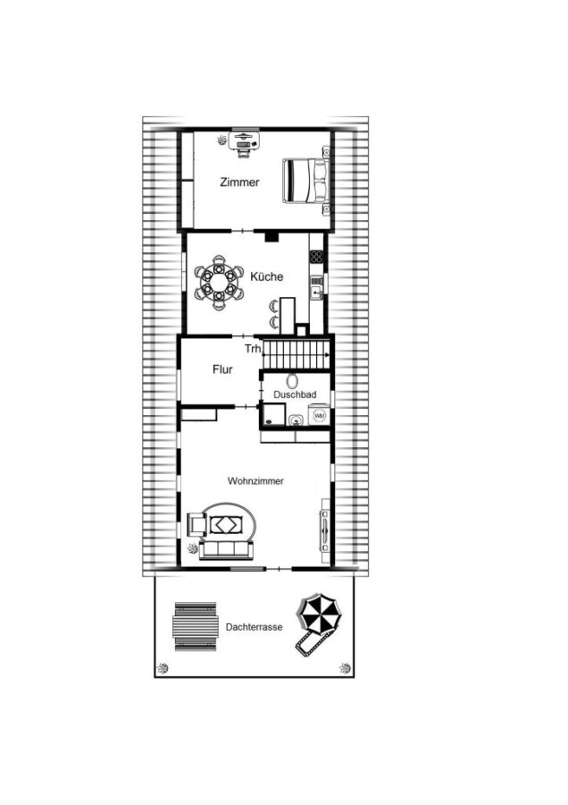 Für gemütliche Grillabende steht Ihnen die großzügige Dachterrasse zur Verfügung, die mit viel Platz besticht.