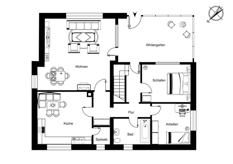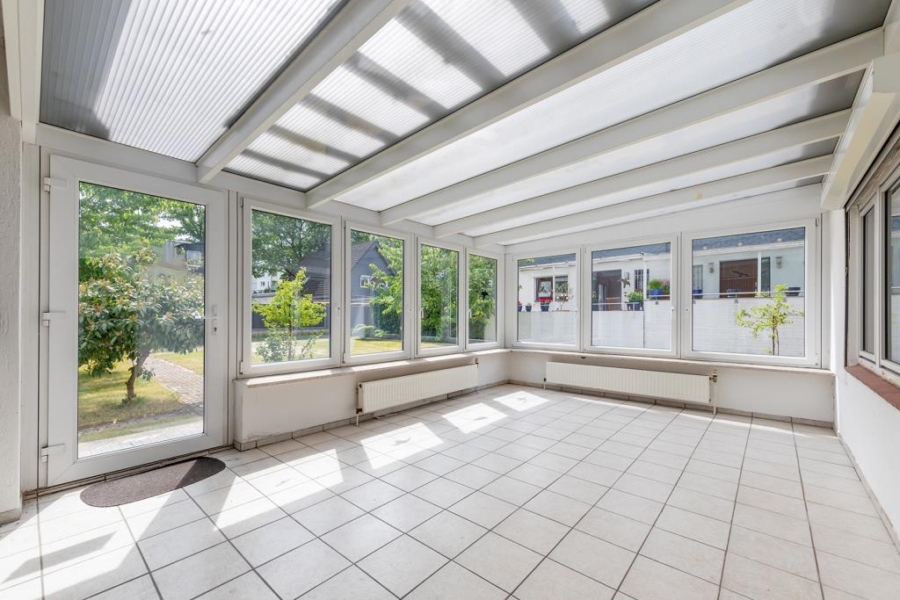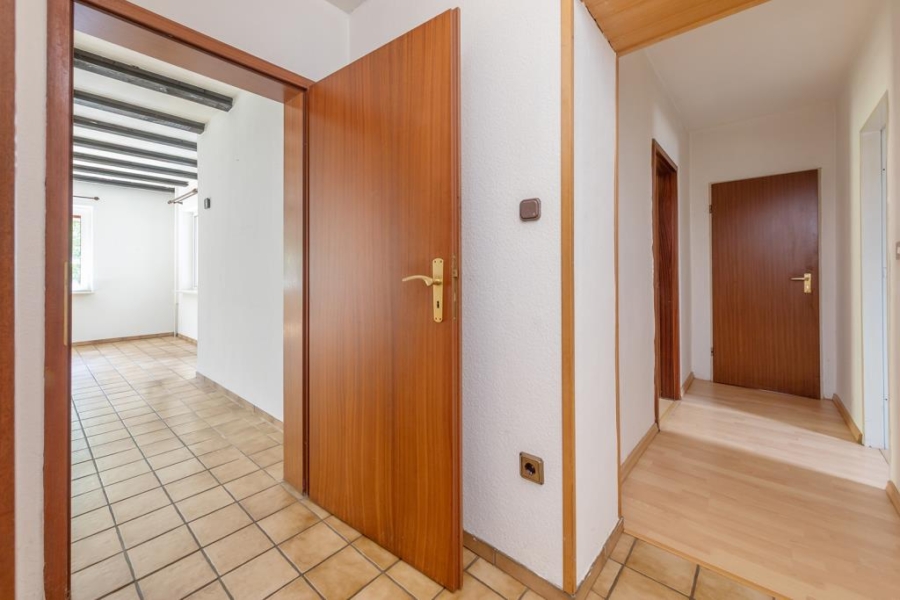 Hereinspaziert über den Wintergarten gelangen Sie geradezu in den Flur, von welchem sich Ihnen das räumlich gut aufgestellte Erdgeschoss eröffnet. Bei Bedarf ließe sich der Hauseingang problemlos und den eigenen Wünschen entsprechend versetzen.