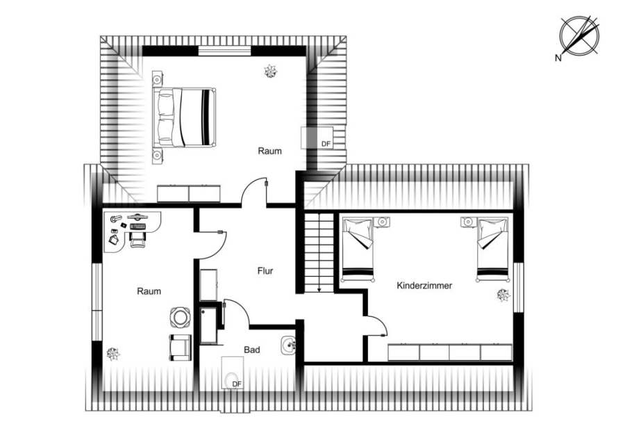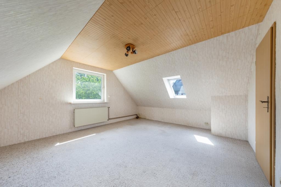 Über die Treppe im Dachgeschoss angelangt, hält dieses drei weitere helle Räumlichkeiten für Sie bereit, welche diverse Nutzungsoptionen mit sich bringen. Ein zeitlos gestaltetes Duschbad rundet das Raumangebot auf dieser Ebene ab.