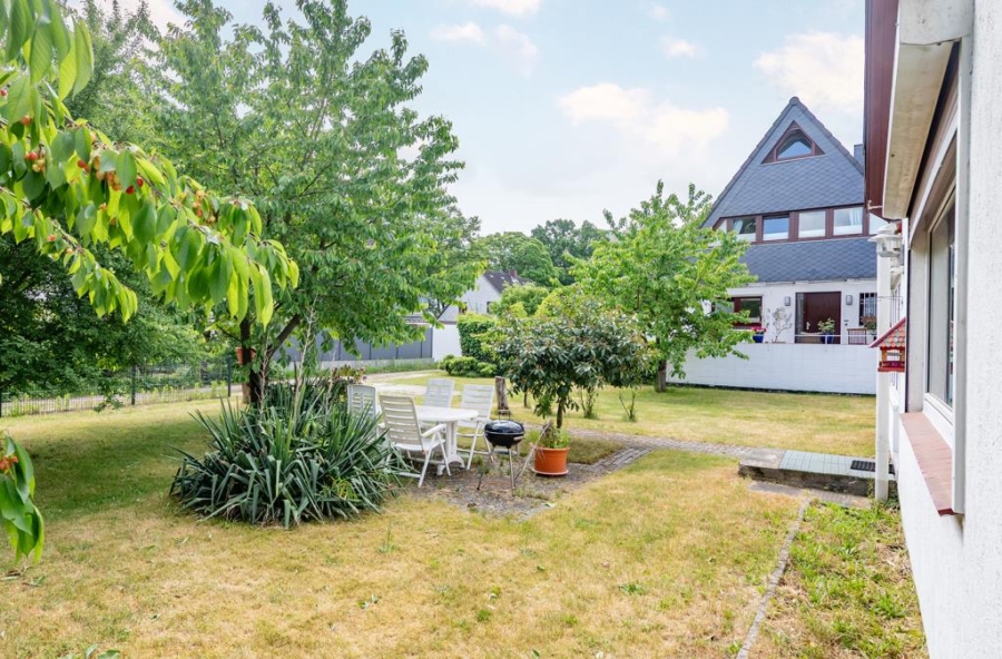 Inmitten des gepflegten Grüns befindet sich eine gepflasterte Terrassenfläche, welche zu gemütlichen Stunden in der Sonne einlädt.
