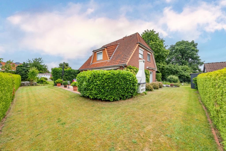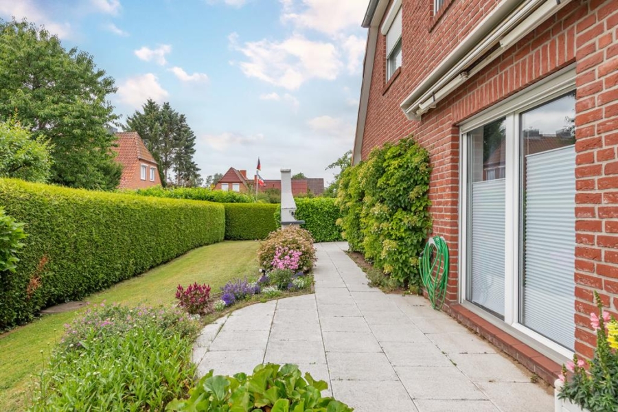 Das ca. 520 m² große, ruhig gelegenen Pfeifenstilgrundstück ist blickdicht eingewachsen und liebevoll bepflanzt.
