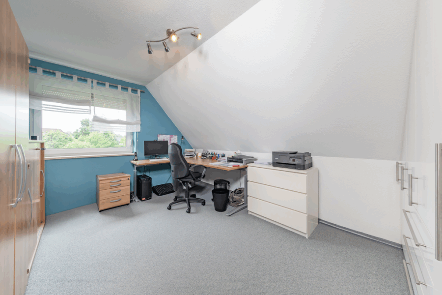 Im Dachgeschoss erwarten Sie zwei weitere Zimmer, welche sich optimal als Kinder-, Arbeits- oder Gästezimmer nutzen ließen. Zudem befindet sich hier ein großzügiges Elternschlafzimmer mit direktem Zugang zur Ankleide sowie ein Badezimmer mit Wanne und Dusche. Alle Räume sind ideal geschnitten und bieten Rückzugsmöglichkeiten für jedes Familienmitglied. In den Räumlichkeiten befinden sich maßgefertigte Einbauschränke.