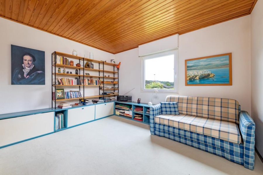 Einer der Räume ist beheizbar, verfügt über einen charmanten Bartresen und ließe sich optimal als Hobbyraum nutzen. Aufgrund der erhöhten Lage des Hauses sorgen hier trotz Kellergeschoss sorgen großflächige Fenster für optimale Lichtverhältnisse.