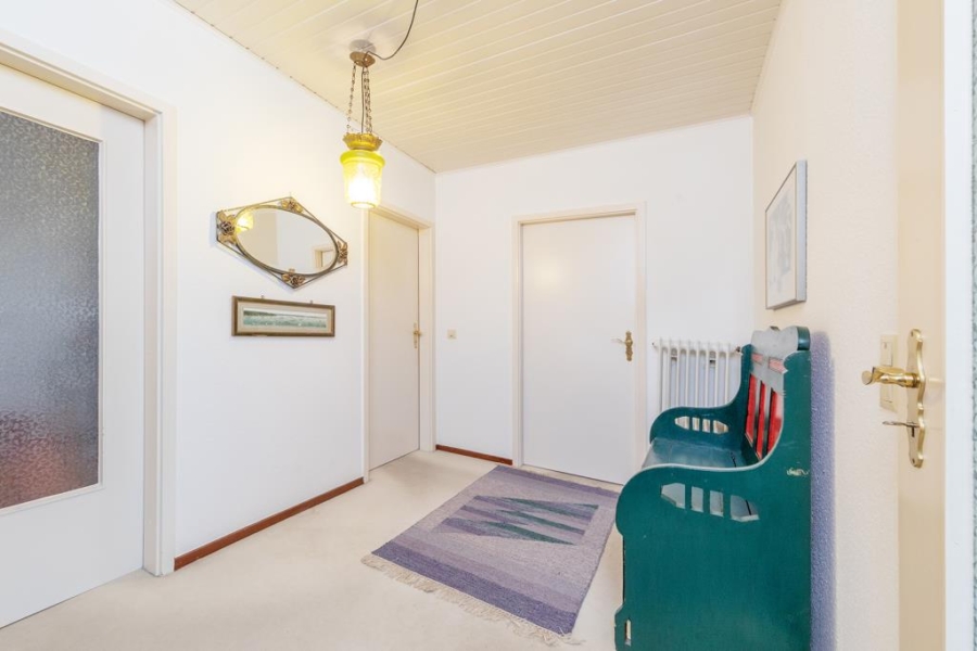 Beim Betreten der Immobilie werden Sie von einem Windfang mit angrenzendem Gäste-WC und ausreichend Platz für eine Garderobe in Empfang genommen.