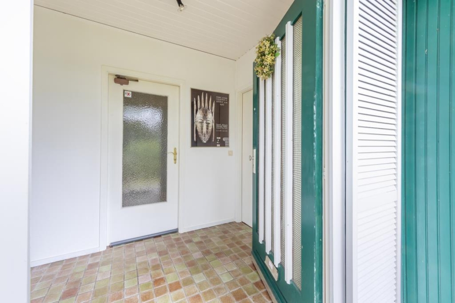 Der Hauseingang ist mit einer stilvollen Überdachung mitsamt Glaselementen versehen.