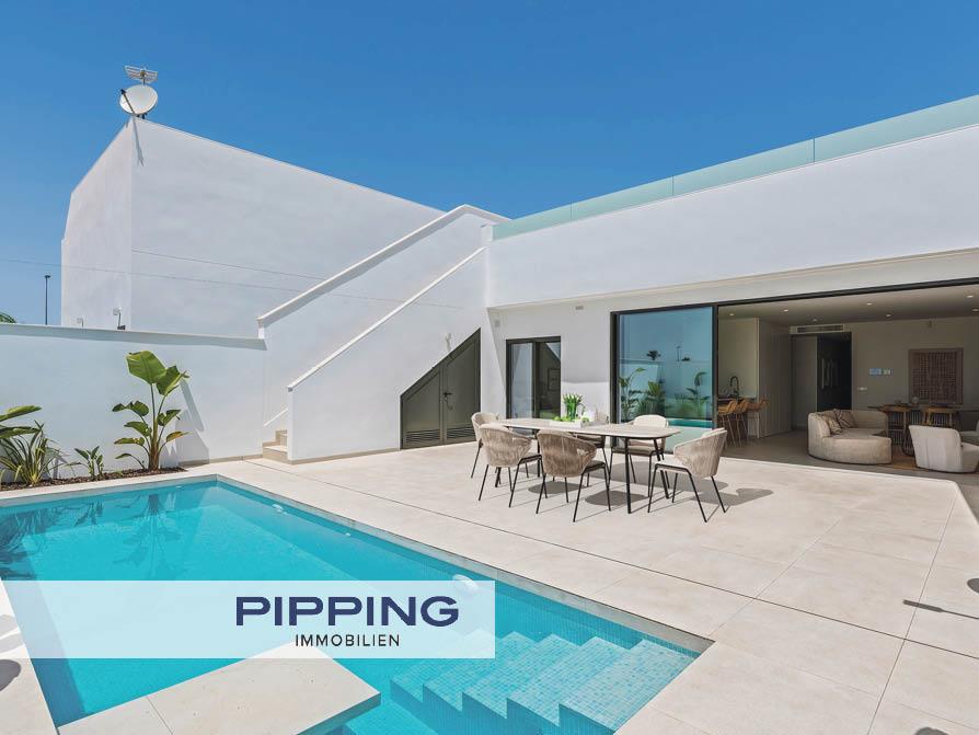 Die exklusive Neubau-Villenanlage "Villas Alejandra XII" in Los Alcázares an der Costa Cálida umfasst moderne Villen auf großzügigen Grundstücken und vereint zeitgemäße Architektur mit hochwertigem Wohnkomfort in unmittelbarer Nähe zum Mar Menor.