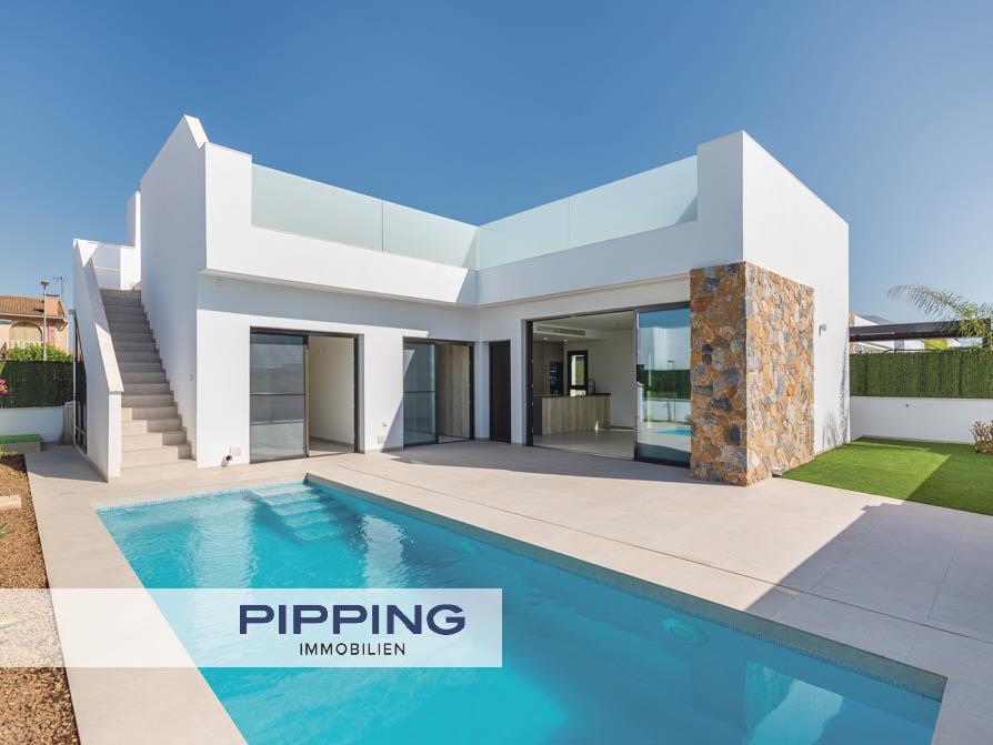 Die exklusive Neubau-Villenanlage "Villas Alejandra XI" in San Javier (Murcia) umfasst moderne Villen auf großzügigen Grundstücken mit privatem Pool und zeitgemäßer Architektur.