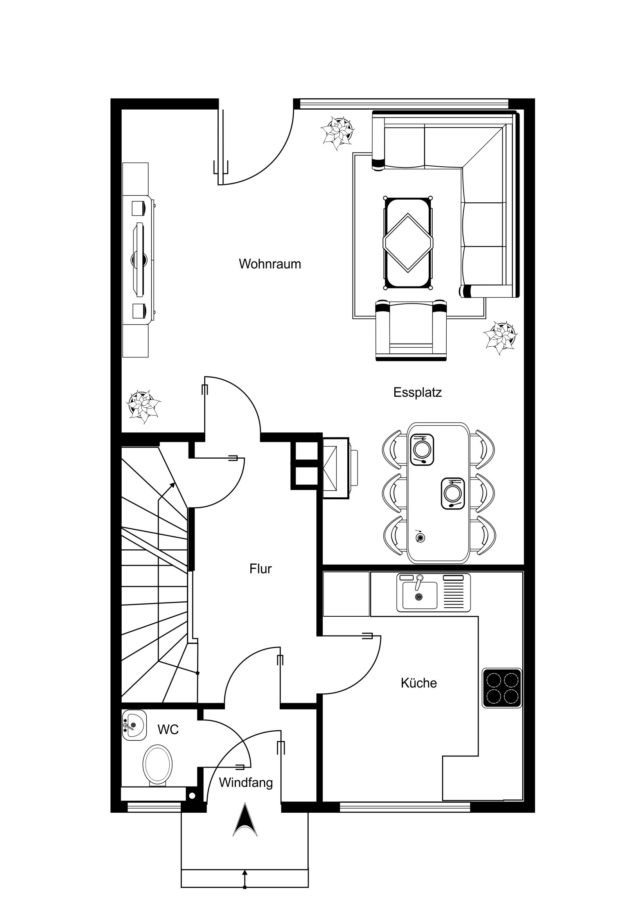 Beim Betreten der Immobilie werden Sie von einer kleinen Diele in Empfang genommen, welche ausreichend Platz für eine Garderobe beherbergt und linker Hand ein Gäste-WC für Sie bereithält.
