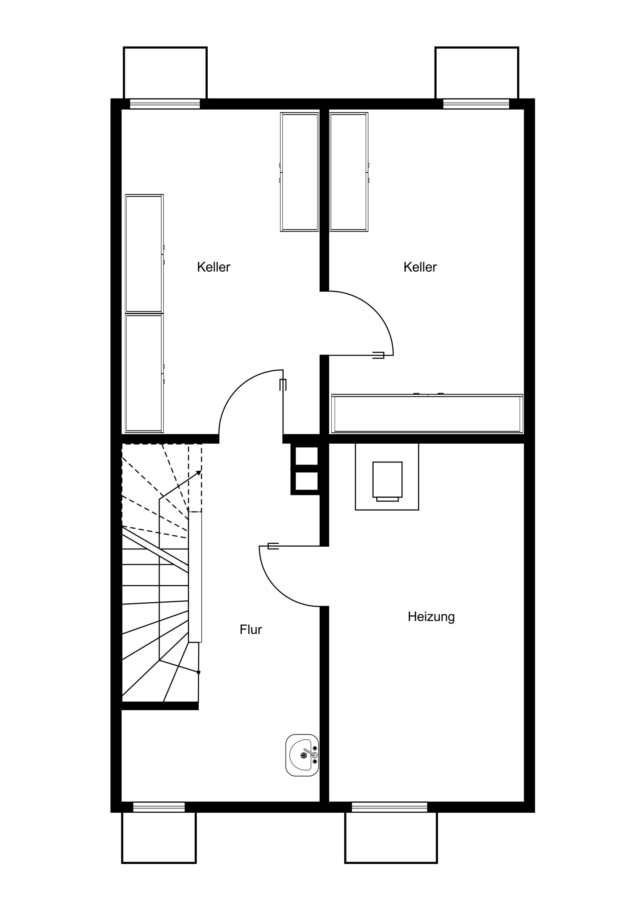 Der Keller verfügt über zusätzliche Staufläche oder Platz zur Einrichtung eines Hauswirtschaftsraumes.