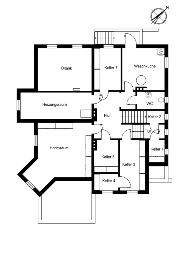 Der Vollkeller verfügt über einen Außenzugang und weist ausreichend Stauraum aus.