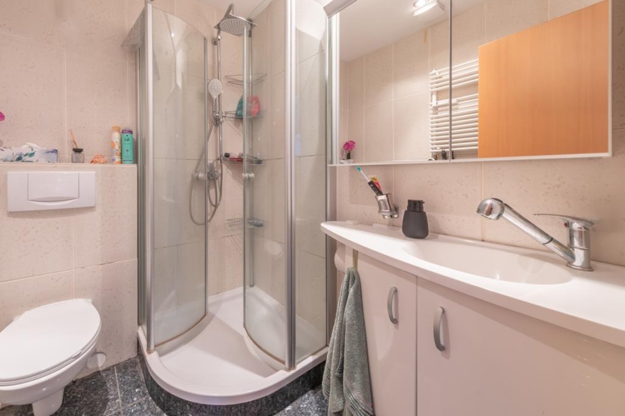 Das Badezimmer ist mit Dusche, Badewanne und WC ausgestattet und erfüllt damit alle wichtigen Anforderungen des Alltags.