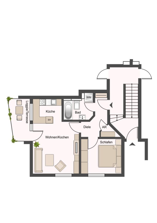 Für junge Paare oder Kapitalanleger: „Gut geschnittene 2‑Zimmer-Hochparterre-Wohnung mit Terrasse“