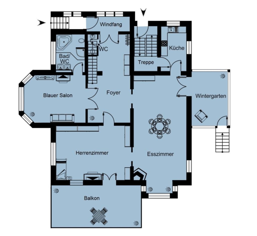 Eine Umnutzung zur ursprünglichen Landhausvilla wäre jedoch mit einem Rückbau des Treppenhauses verbunden, um das außergewöhnliche Potenzial der Immobilie in vollem Umfang zu entfalten.