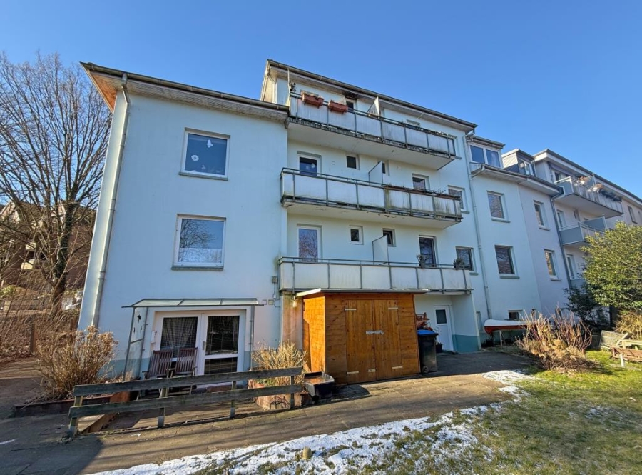 Auf dem ca. 638 m² großen Grundstück befinden sich eine Betonfertiggarage (ca. 3 m x 6 m) sowie ein Schuppen. Der Garten steht der gesamten Hausgemeinschaft zur Verfügung und bietet Potenzial zur Nutzung als gemeinschaftlicher Erholungsort.
