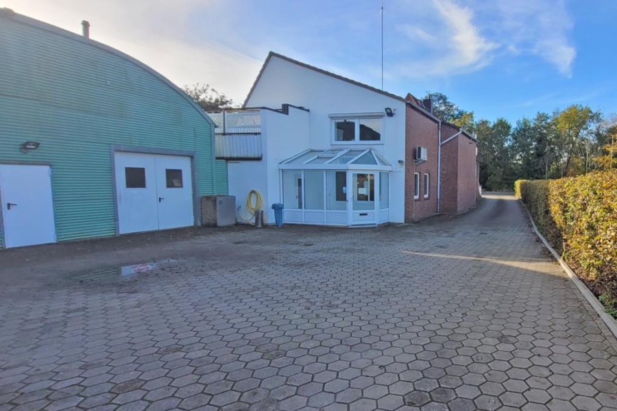 Das Hauptgebäude weist eine Wohnfläche von ca. 122 m² auf. Der Büroanteil beträgt ca. 271 m². Die Hallen (Erd- und Obergeschoss) umfassen ca. 275 m². Der Keller bietet eine Fläche von ca. 45 m² und auf dem Hof stehen ca. 355 m² Nutzfläche zur Verfügung.