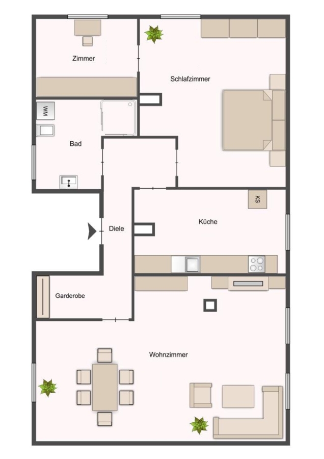 Mit Betreten der gut geschnittenen 2,5-Zimmer-Wohnung werden Sie von einer Diele in Empfang genommen. Diese bietet ausreichend Platz um eine Garderobe unterzubringen.
