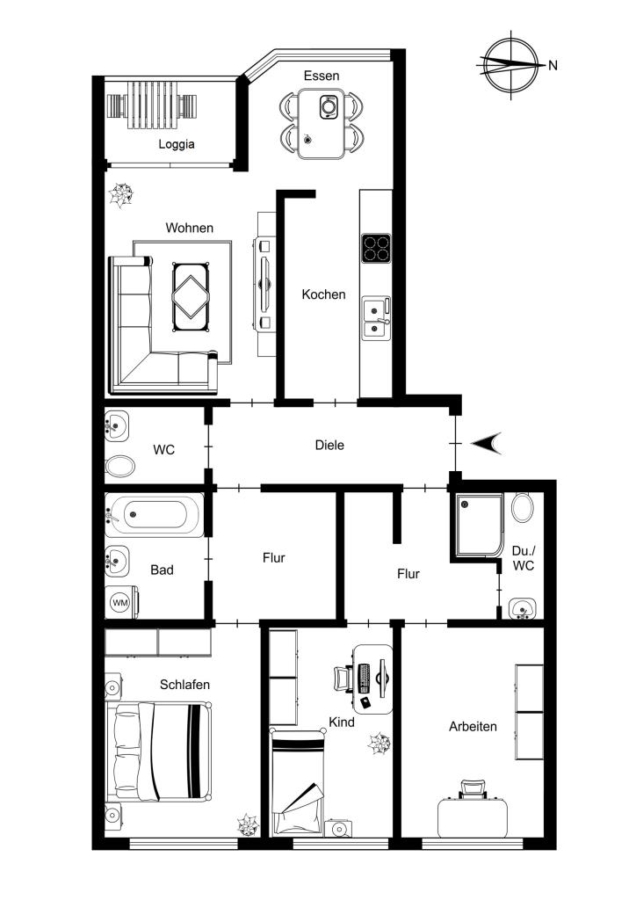 Beim Betreten dieser großzügig geschnittenen 4-Zimmer-Wohnung werden Sie von einem einladenden Eingangsbereich mit ausreichend Platz für eine Garderobe in Empfang genommen.