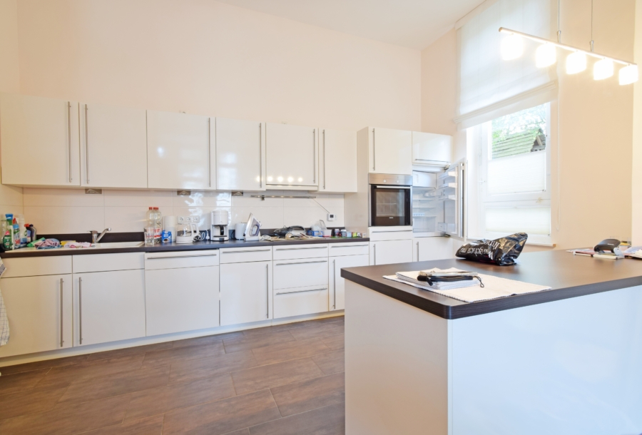 Das Herzstück der Wohnung bildet der großzügige Wohn- und Essbereich mit einer offenen, modernen Einbauküche. Von hier aus gelangen Sie auf den Balkon, auf dem Sie herrliche Stunden in der Sonne verbringen können.