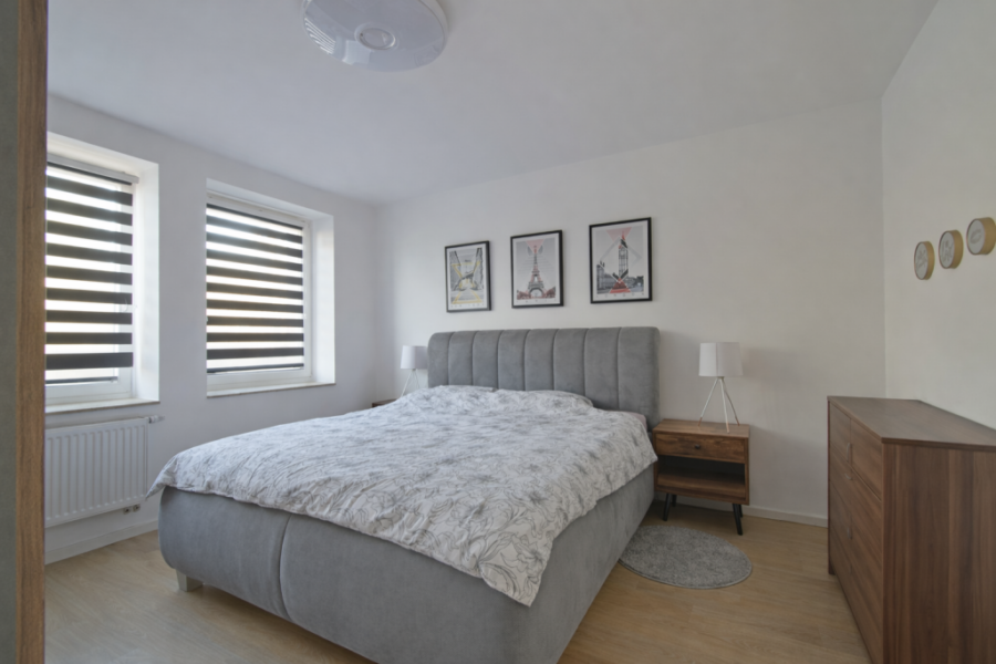 Das Schlafzimmer bietet genügend Raum für ein Doppelbett sowie einen Kleiderschrank und kann ganz nach Ihren individuellen Wünschen gestaltet werden.