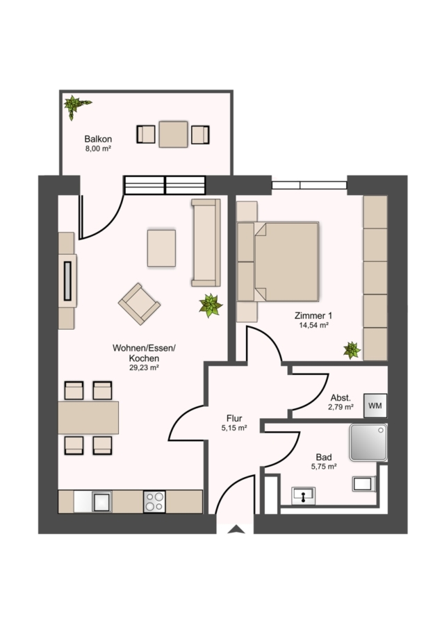 Der am Wohnbereich angrenzende Balkon sorgt für gesellige Stunden unter freiem Himmel.